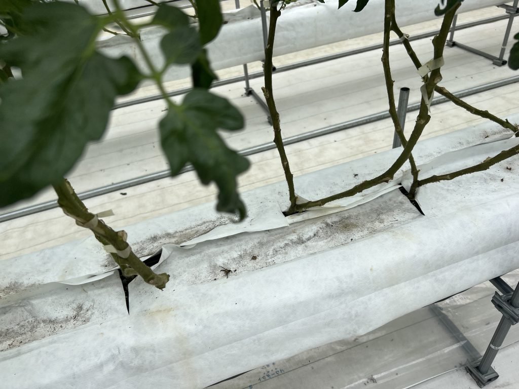 土耕栽培にはなりまが、この中に土が入っており外的から影響を受けないようにシートをかぶせてあります。