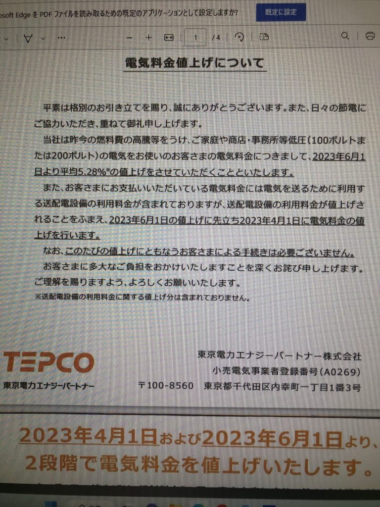 各家庭も悲鳴を上げている中、弊社にも通知が届きました。。。。