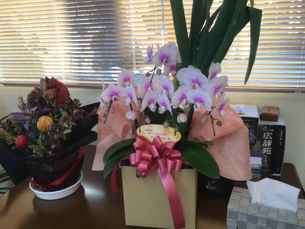 親広産業に素敵なフラワーアレンジメントが届きましたヾ(≧▽≦)ノ