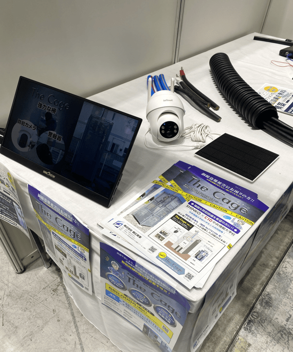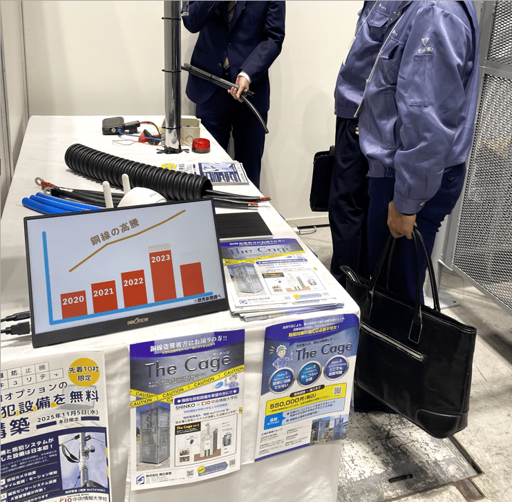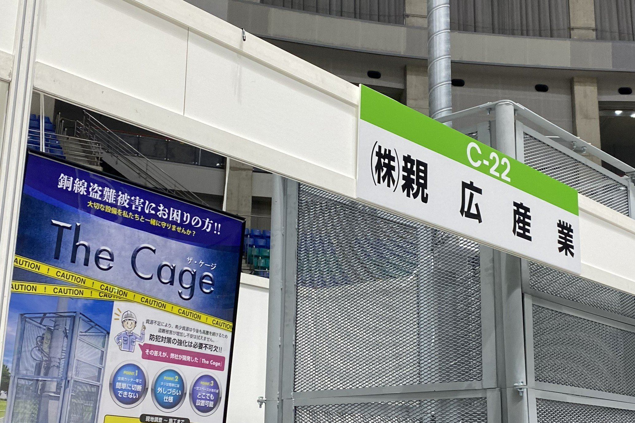 ブースでは、盗難防止柵【The Cage】の実物を展示し、昨今増え続ける銅線盗難の実態や、その防止策をご覧いただきました。