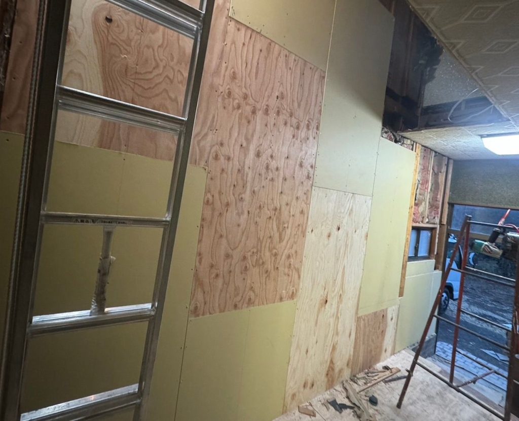 骨組みだけだった壁にも、石膏ボードを貼り完成に近づけます