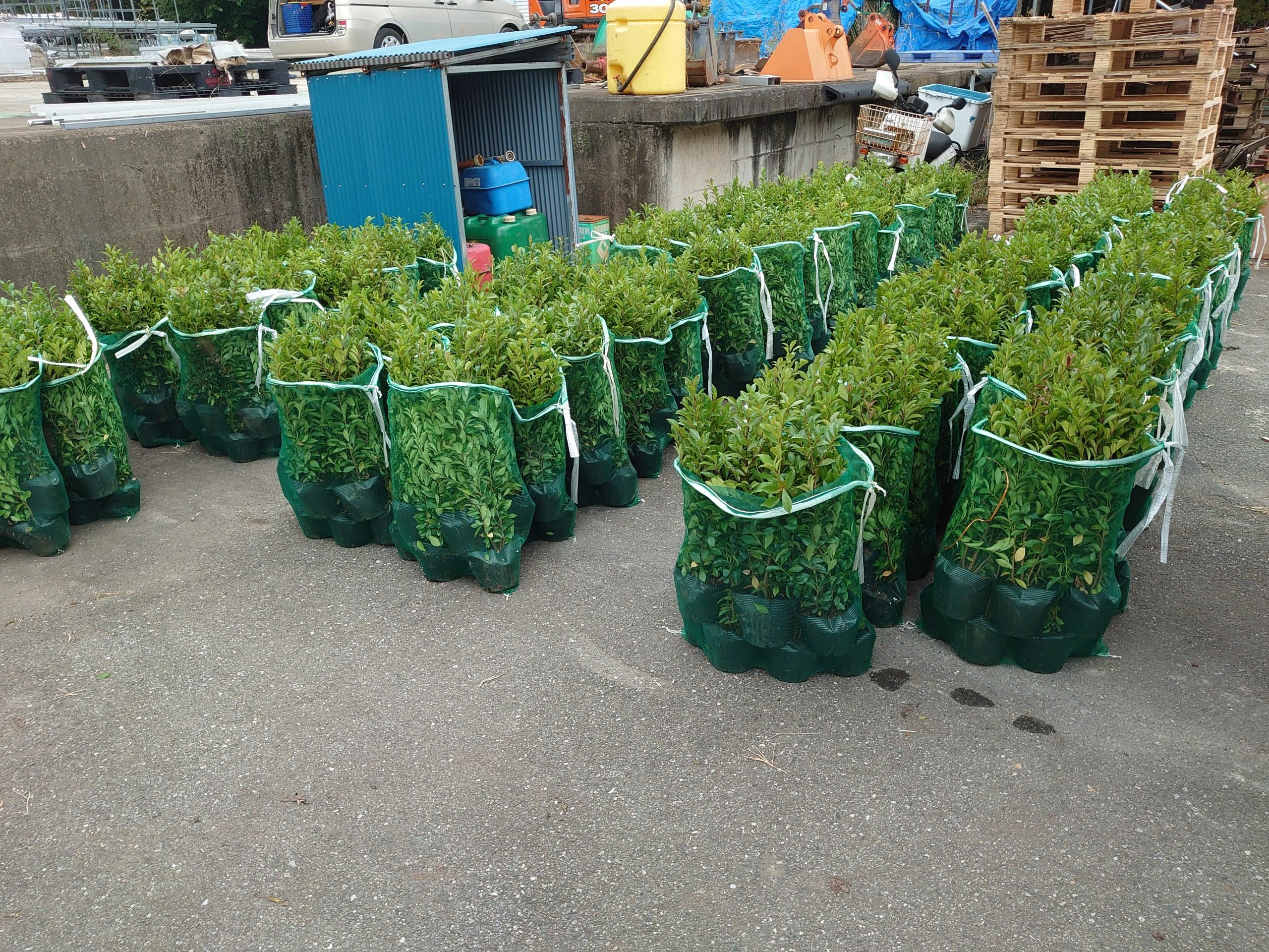 弊社では、ソーラーシェアリング太陽光も手掛けており、パネルの下で榊を育成するため榊を750本入手しました。