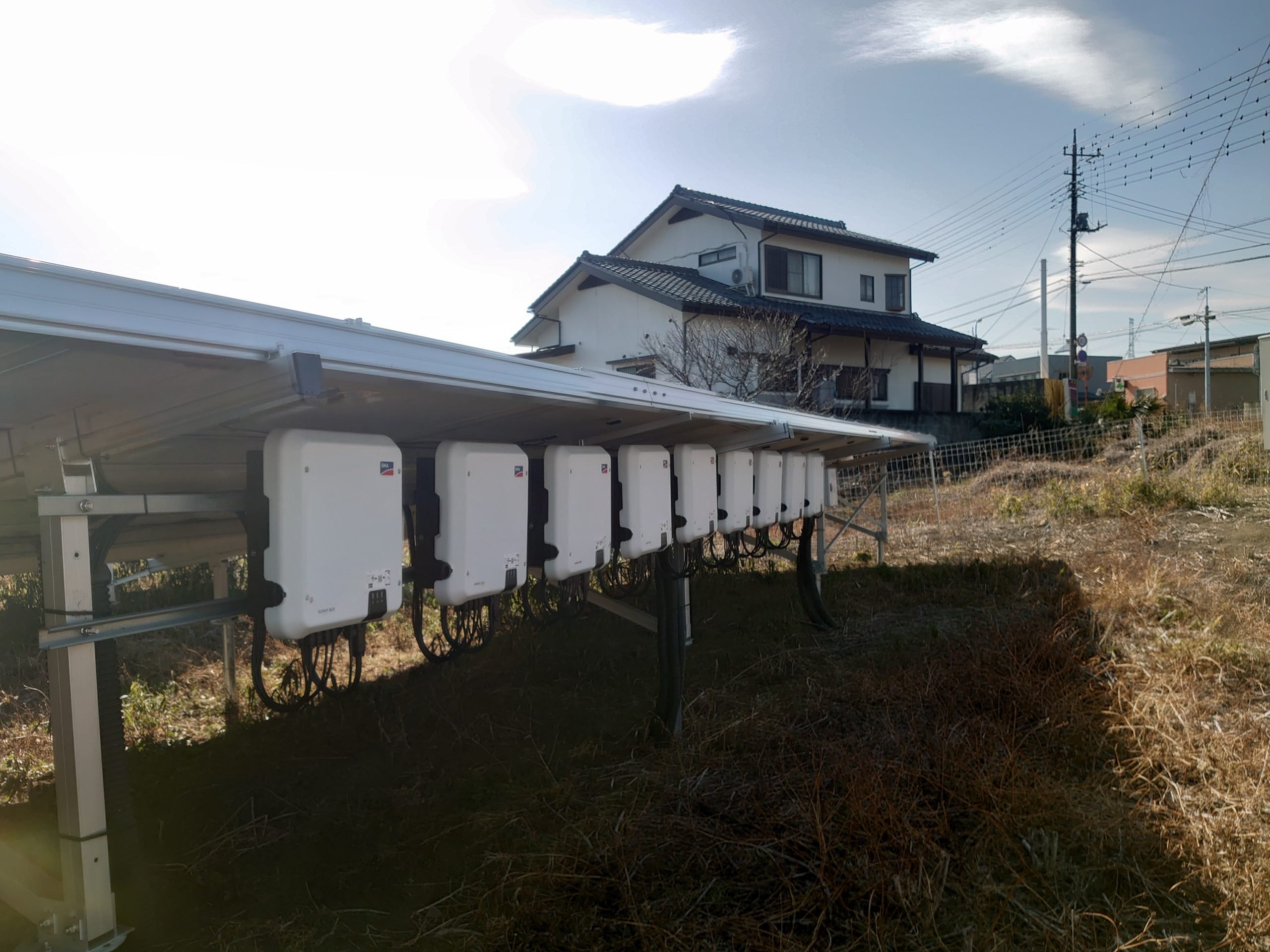 理由はですね。。。。太陽光設備に引き込む東電の電柱が違うからです!!
