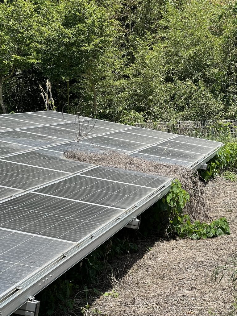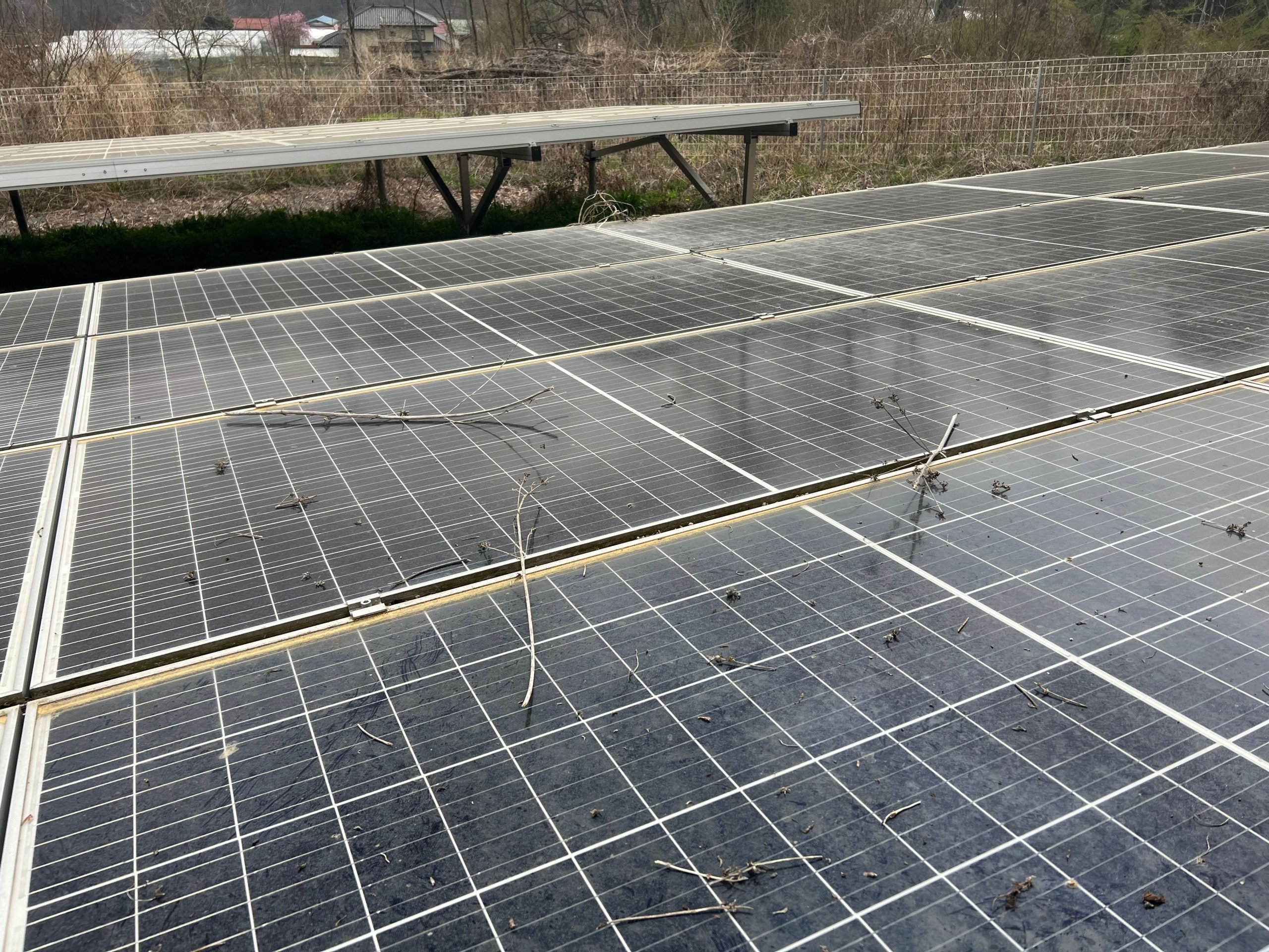 多くの枯れ草がパネルの上に!