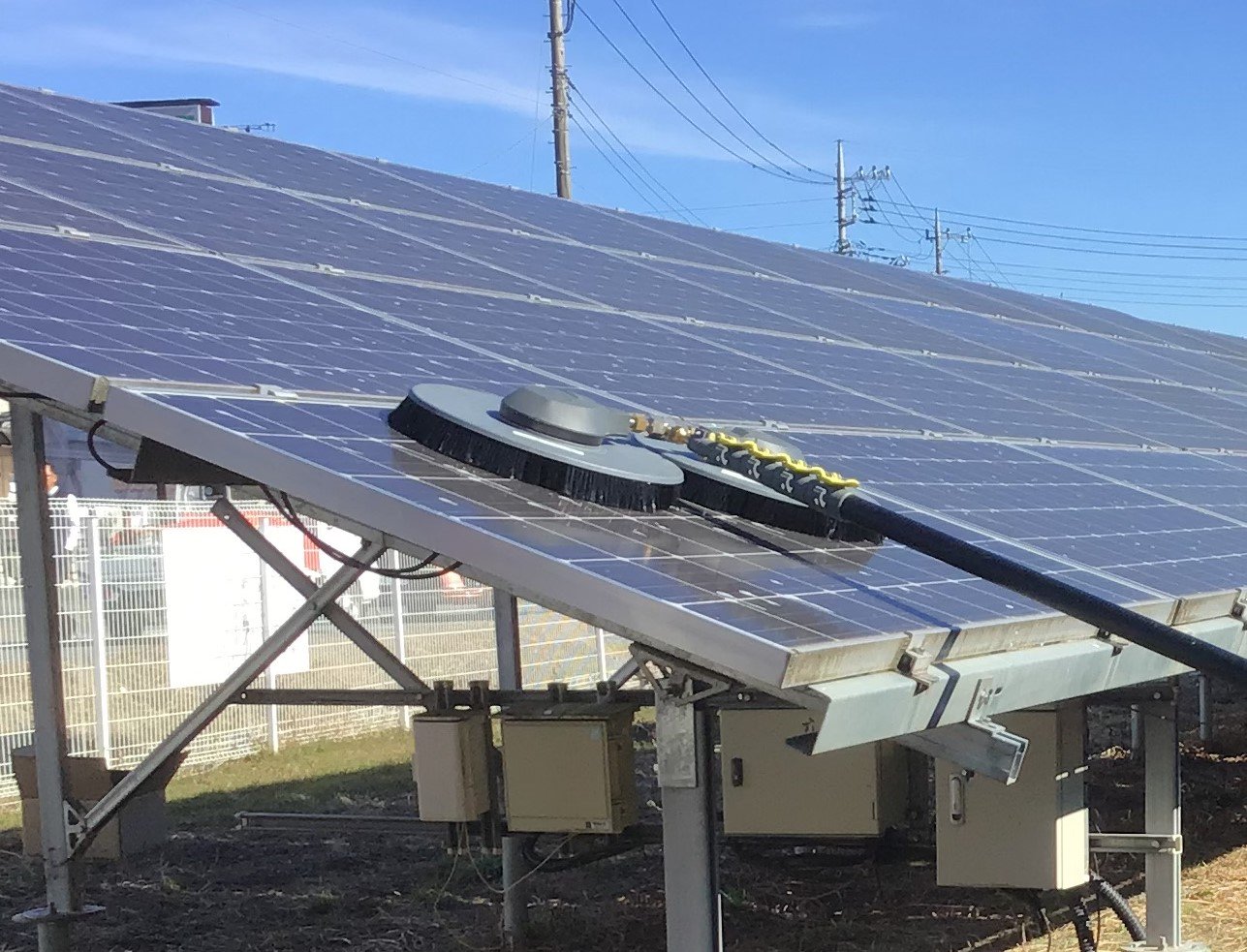 太陽光パネル洗浄用のブラシがあるんです。
